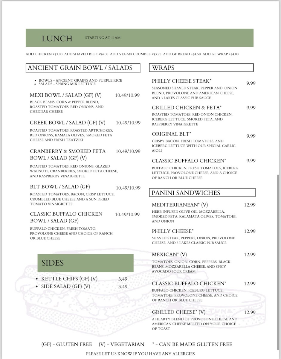 White or Wheat Wrap, Philly Puck, Peppers and Onions, Provolone Cheese, and 3 Lakes Pub Sauce